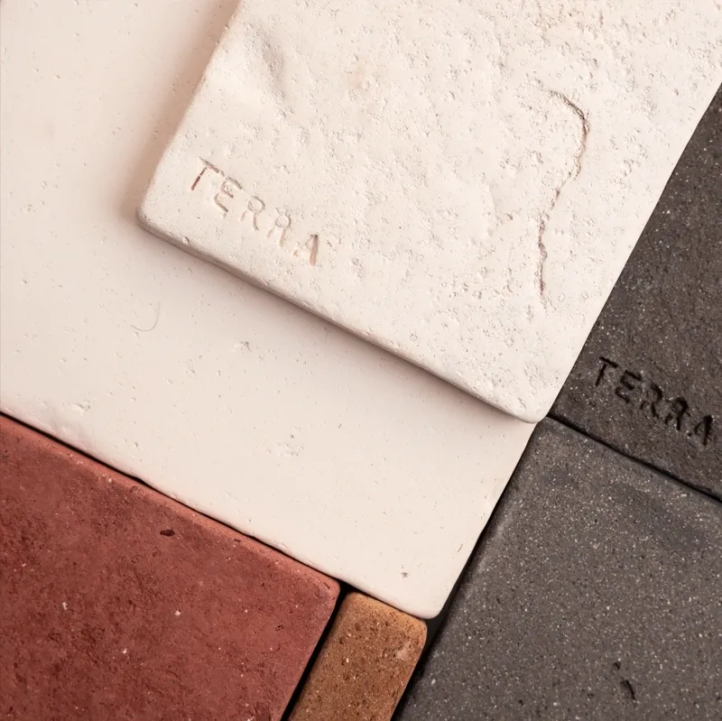 La colección TERRA® es nuestra línea de baldosas de barro natural para suelos y paredes. Fabricadas con arcillas de alta calidad, estas piezas de Terracota moldeadas a mano están disponibles en una gran variedad de formas y colores. La variabilidad y saturación de colores, así como la textura de su superficie y cantos, las hacen únicas. Las baldosas TERRA® son antideslizantes (clase R13), resistentes a choques térmicos, heladas* y compresión mecánica. Presentan poca variación en dimensiones y baja porosidad*. Consulte la ficha técnica.