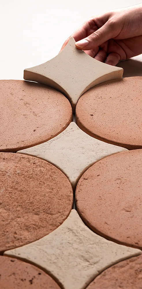The TERRA® series features natural clay tiles designed for flooring and wall decor. Made from carefully selected premium clays, these Terracotta tiles are handcrafted and come in diverse shapes and hues. Their defining characteristics include tonal variations, rich colour depth, and textured surfaces and edges. TERRA® tiles are slip-resistant (class R13), resistant to thermal shocks, frost*, and mechanical compression. They show limited variations in dimensions and low porosity*. See technical sheet.